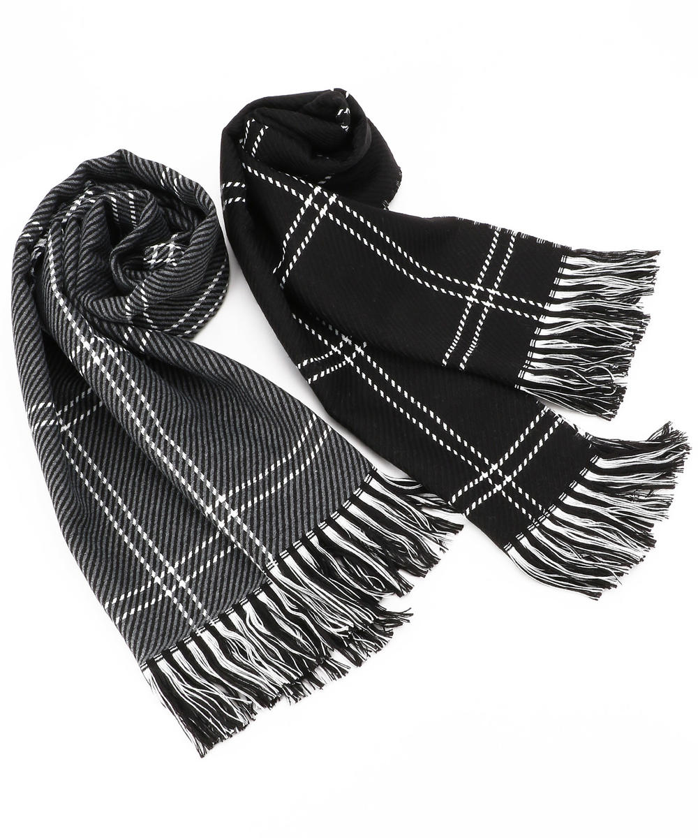チェック・千鳥格子柄のリバーシブルタイプのマフラーは巻き方によってデザインを楽しめるのが良いところ。平日はワンループで通勤服に合わせて。休日はちょっと外してニューヨーク巻きなど…長さがあるのでアレンジ自由自在です。