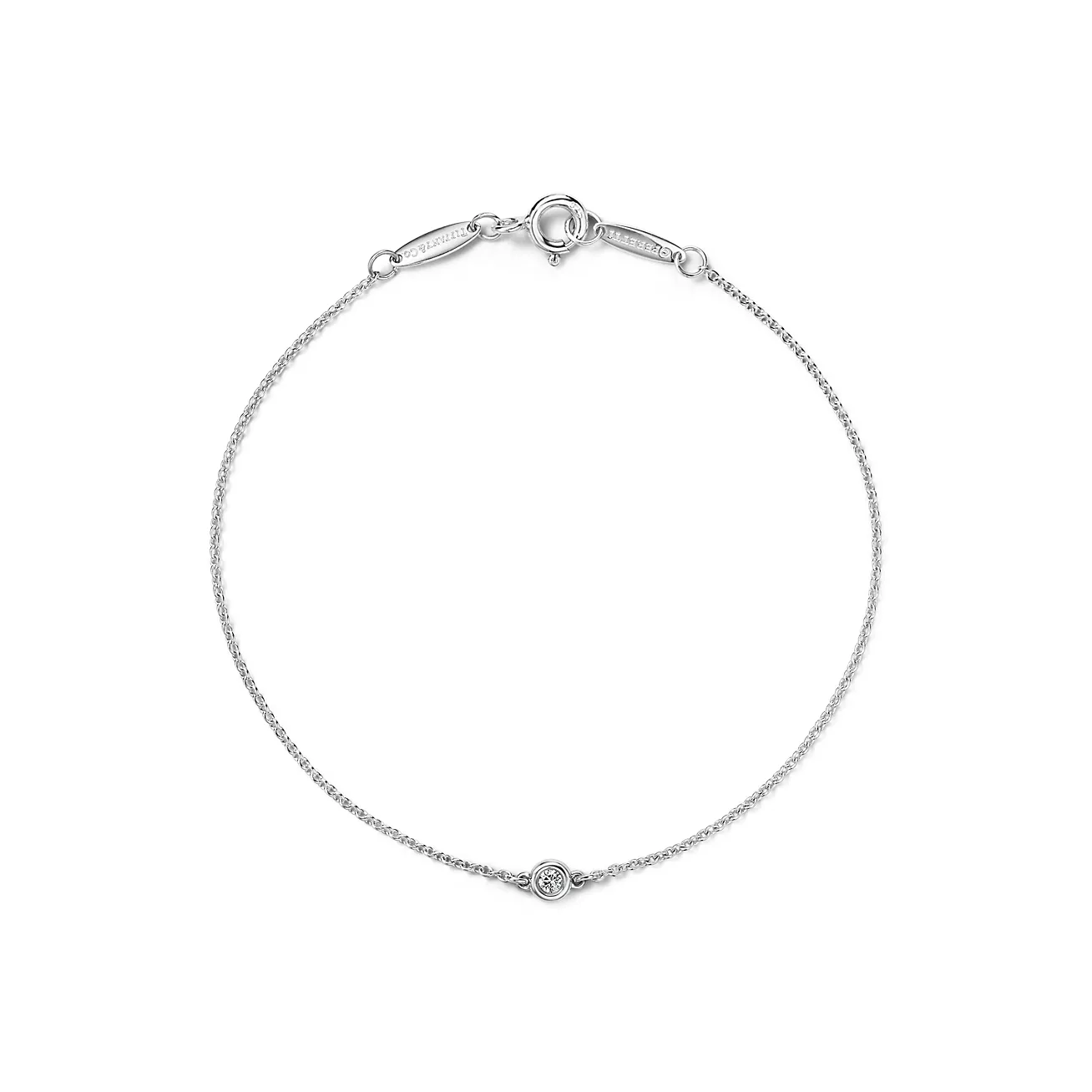 「Tiffany & Co.」のシルバーブレスレット。シンプルでベーシックなデザインで、オフィスでも使えそうなのが嬉しい。ラウンドブリリアントカットの一粒ダイヤモンドが、手の動きにあわせてキラキラと輝きます。1つは手に入れたい憧れブランドのジュエリーは、思わず友達にも自慢したくなってしまいそう!