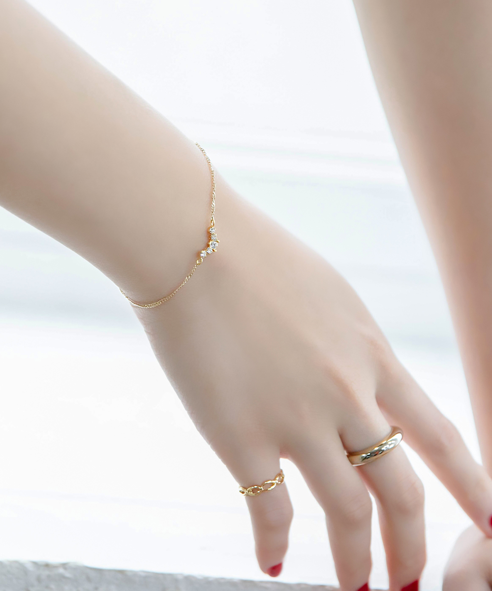「Phoebe」のブレスレットは3,000円前後で買えるハイセンスな高見えアイテム。こちらのブレスレットは、5石のビジューがV字に煌めくジュエリーライクなデザイン。華奢なラインで女性らしい手元を演出してくれます。