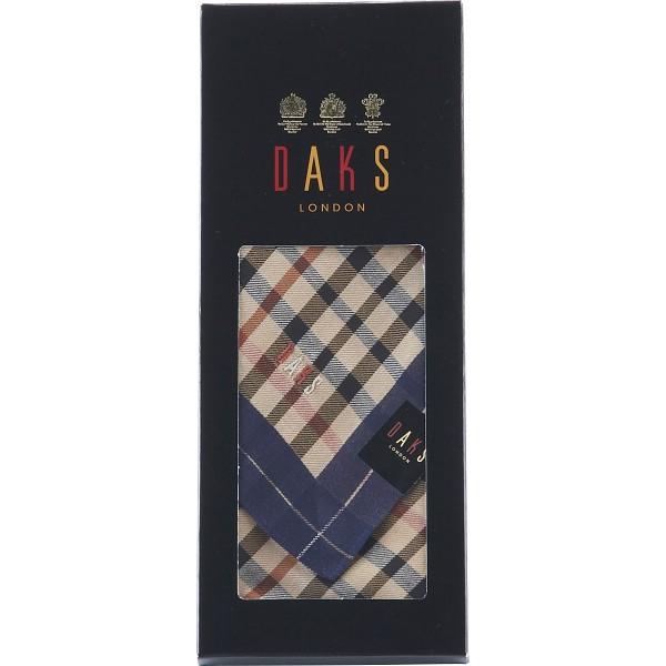 「DAKS」のギフト用メンズハンカチ。紳士向けの上質ブランドで、英国トラッドの落ち着いたチェック柄が魅力的。縁取りのカラーはブルーの他に、ベージュ・グリーン・レッドがあるので、お相手の好みに合わせてセレクトして。